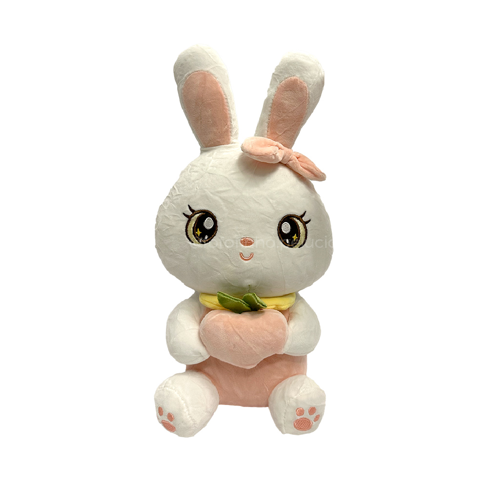 Coelho de Pelúcia com Pêssego, macio, atóxico e antialérgico. Ideal para presentear crianças e adultos, para máquina de bichinhos.