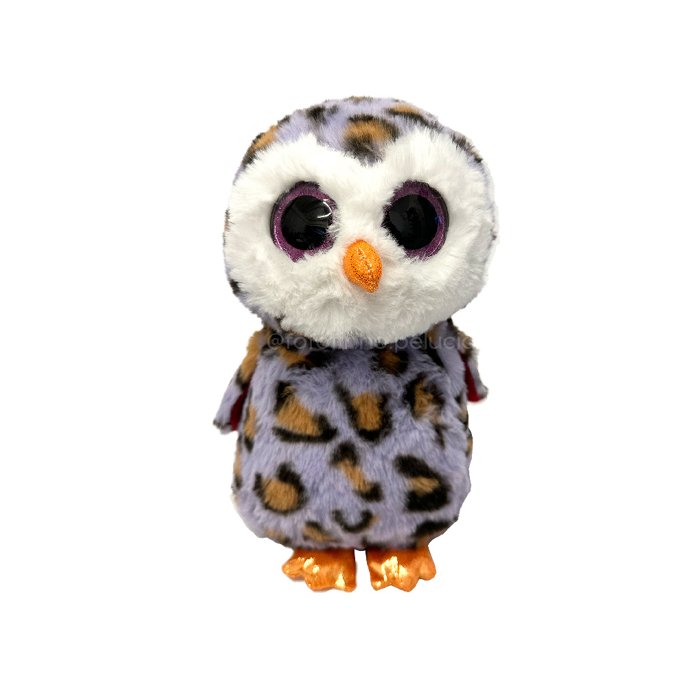 Coruja de Pelúcia com pelagem de onça, pelúcia com Olhos Grandes e Brilhantes. Tamanho médio ideal para presentear crianças e adultos.