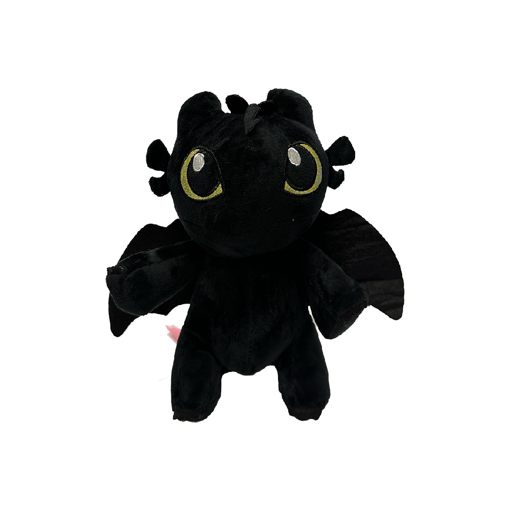 Dragão de pelúcia do filme Como Treinar o seu Dragão, possue um toque macio. Tamanho pequeno na cor preta. Ideal para presentear crianças e adultos.