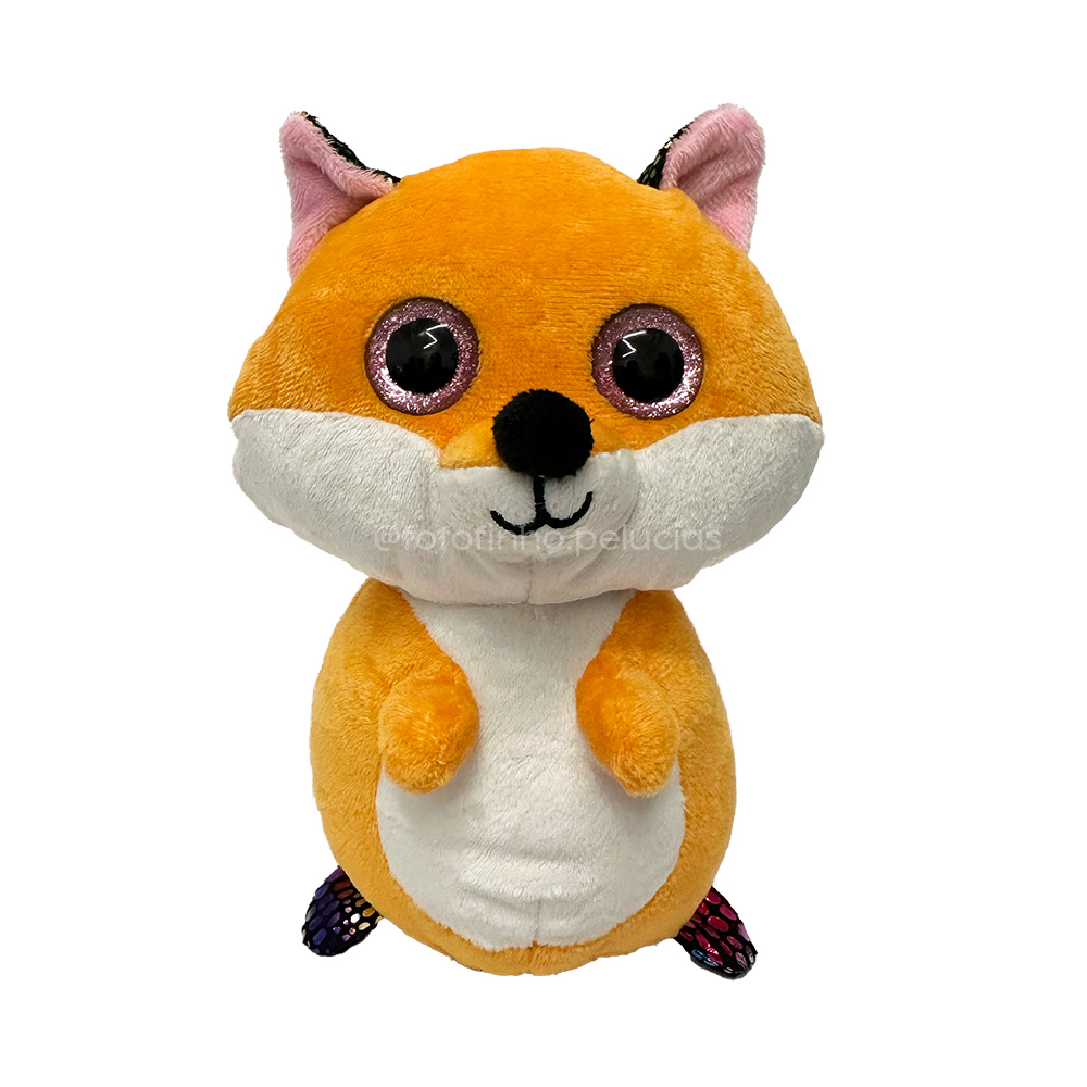 Raposa de pelúcia com olhos grandes brilhantes e manchas cintilantes, possue um toque macio, atóxico. Tamanho pequeno com altura de 20cm aproximadamente, na cor laranja. Ideal para máquina de bichinhos, máquina grua, e para presentear crianças de 2 a 10 anos.
